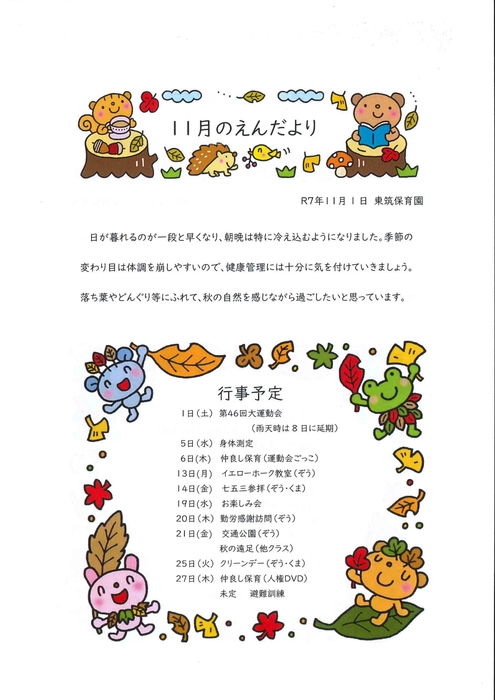 おたよりトップページ > おたより園だより2025年度 園だよりR7.11月R7.10月R7.9月R7.8月R7.7月R7.6月R7.5月R7.4月2024年度 園だよりR7.3月R7.2月R7.1月R6.12月R6.11月R6.10月R6.9月R6.8月R6.7月R6.6月R6.5月R6.4月2023年度 園だよりR6.3月R6.2月R6.1月R5.12月R5.11月R5.10月R5.9月R5.8月R5.7月R5.6月R5.5月R5.4月2022年度 園だより2021年度 園だより